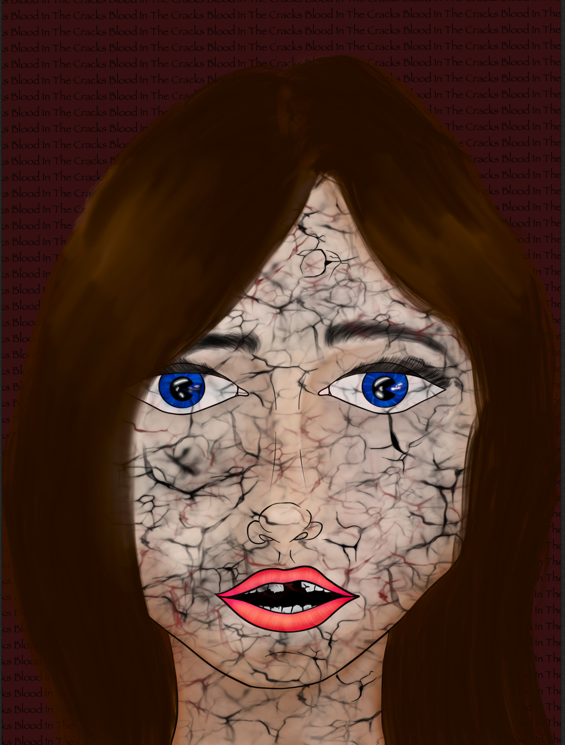 Check out this amazing drawing of Mary Ann, Lola’s imaginary friend/puppet. Her porcelain skin is webbed with fractures, and if you look closely you can see the words ‘Blood in the cracks’ repeated over and over in the background of the image. I love it!