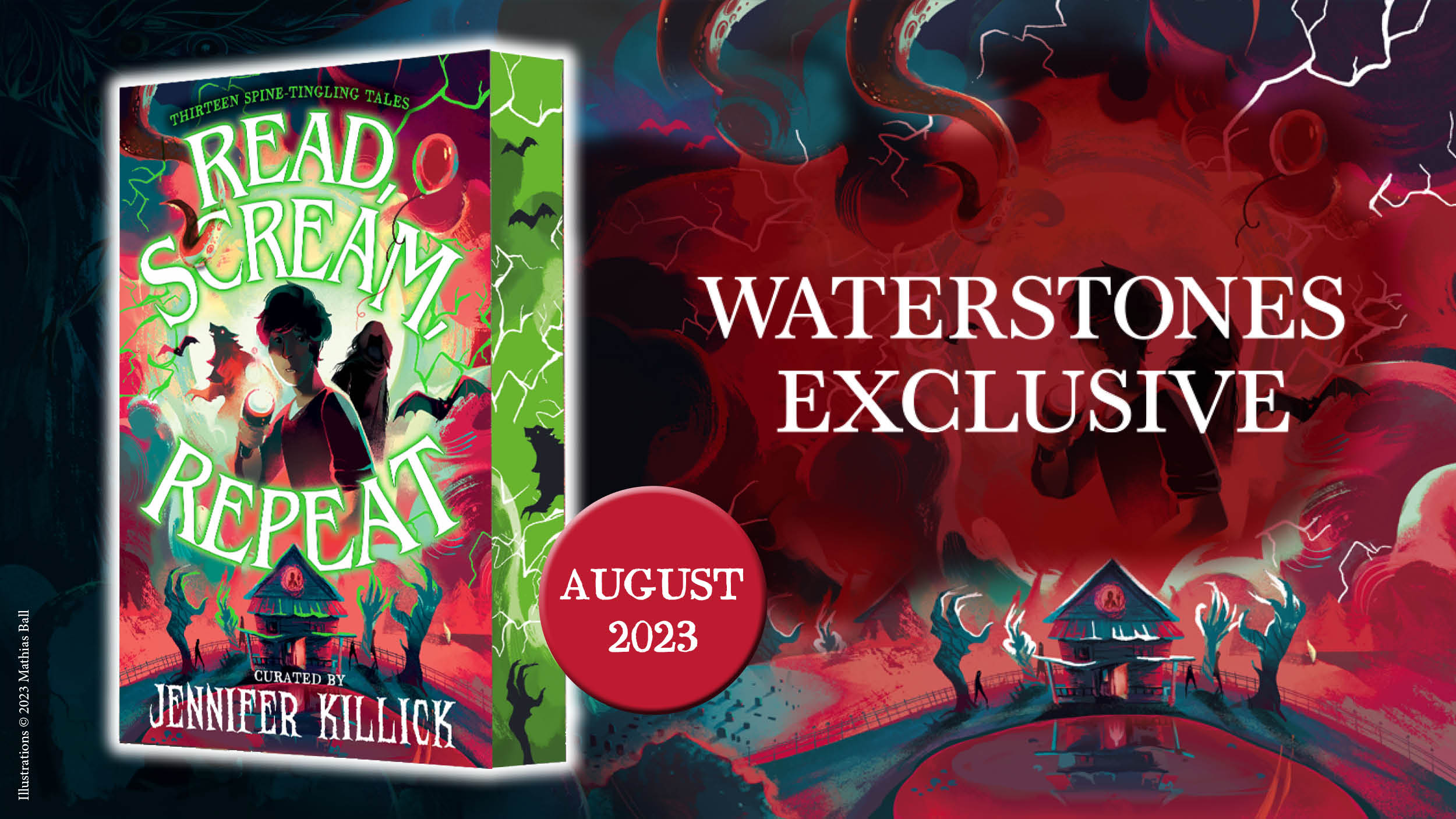 ‘Read, Scream, Repeat brings together thirteen bestselling, award-winning authors: Kirsty Applebaum, Jasbinder Bilan, Aisha Bushby, Joseph Coelho, Rachel Delahaye, Kat Ellis, Phil Hickes, Polly Ho-Yen, Sharna Jackson, Jennifer Killick, Elle McNicoll, Dan Smith and J.T. Williams. The collection is curated by Farshore’s queen of middle-grade comedy-horror, Jennifer Killick!